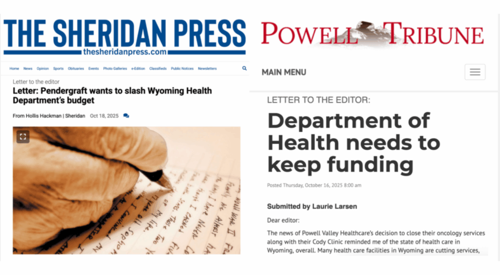 Local op-eds by two Better Wyoming volunteers hold Freedom Caucus lawmakers publicly accountable for their scheme to slash funding from the Wyoming Department of Health.